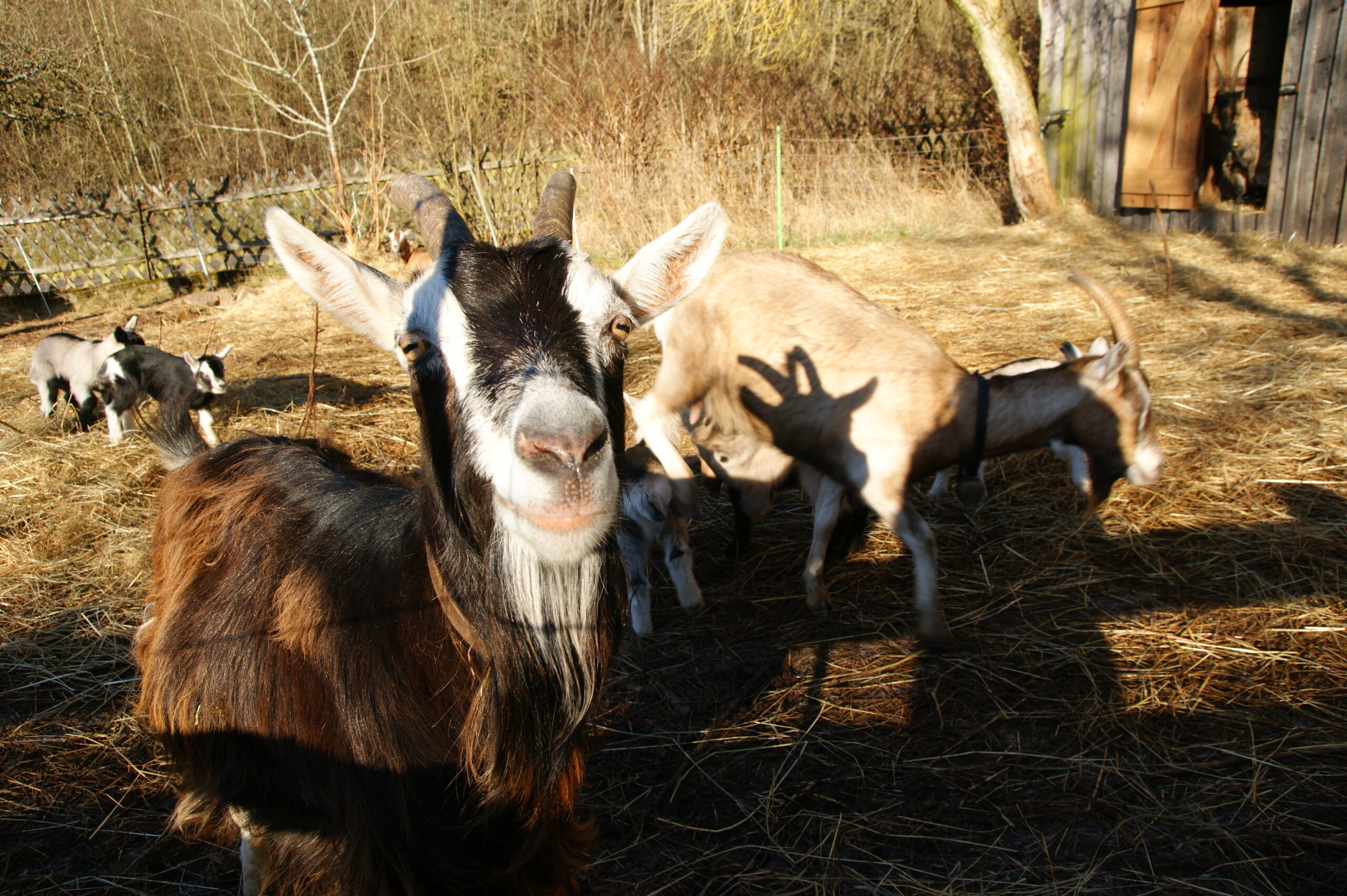 Die kleine Ziegenherde beweidet Hecken und Hangwiesen am Dorfrand, schenkt uns Milch und Lammfleisch für den Eigenbedarf.